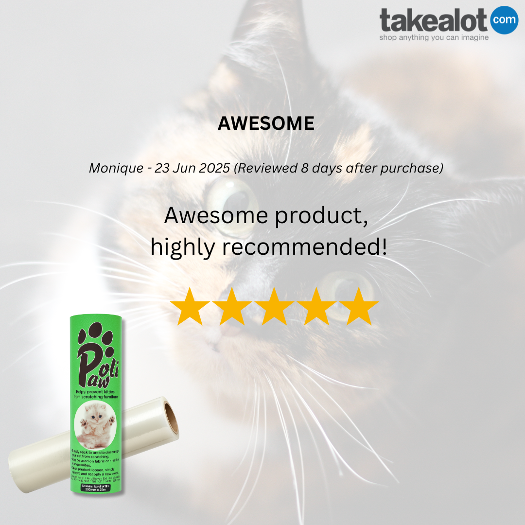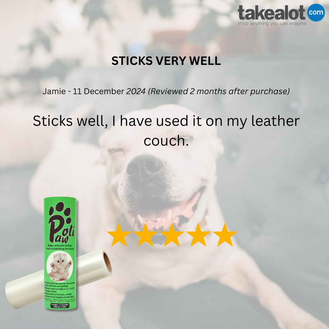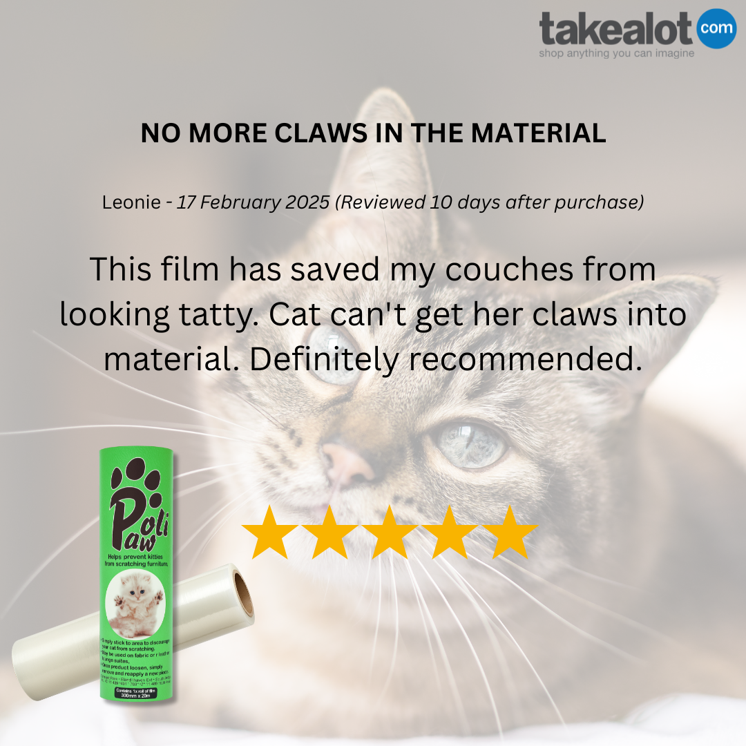 PoliPaw is a clear, durable film designed to help protect your fabric or leather lounge sets from everyday cat damage. Whether it’s sharp little claws digging into the corners of your couch or repeated scratching in the same spot, PoliPaw creates a simple, invisible barrier between your furniture and your feline’s natural (but frustrating) instincts.