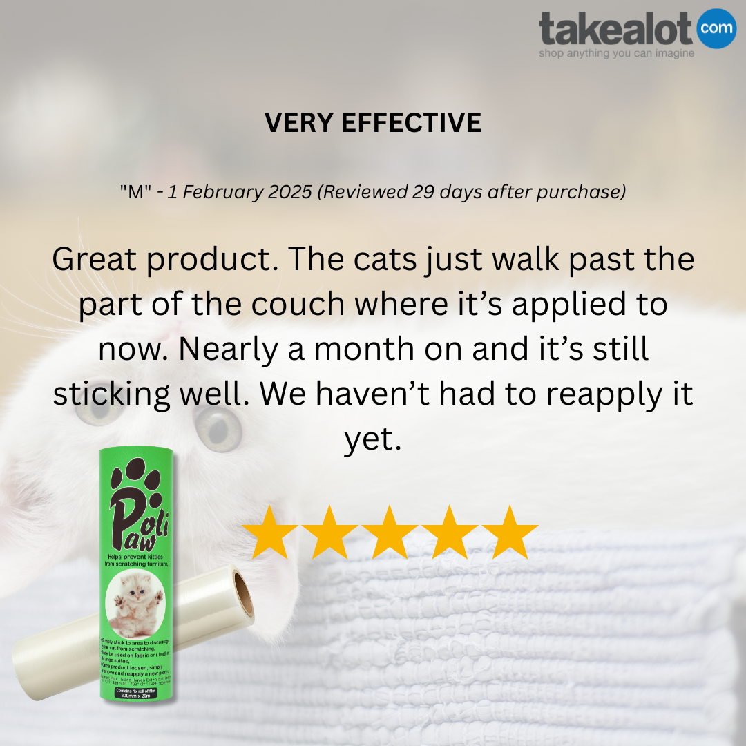 Please note: PoliPaw isn’t a magical cure to stop scratching or jumping altogether—but it does stop the damage. Think of it as your furniture’s invisible armour.